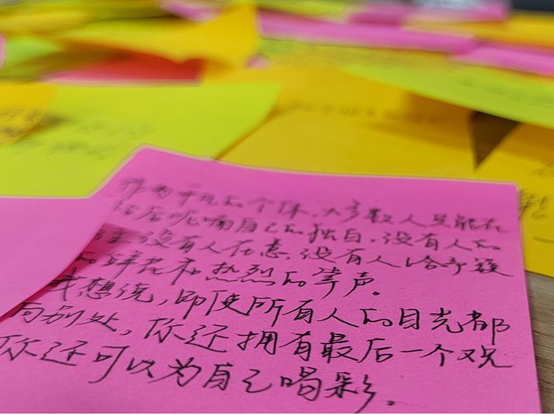 12月17日,学生会组织引导同学们以书写鼓励的话语、幸运符号的形式写下留言条,为考研学子跑好最后一公里加油助威。虽然有些仅是一句话、一个表情包,却也为考研学子们带来积极的能量,让每个参与活动的同学通过自己的文字,传递心意,与考研学子们产生更紧密的联系和情感纽带。