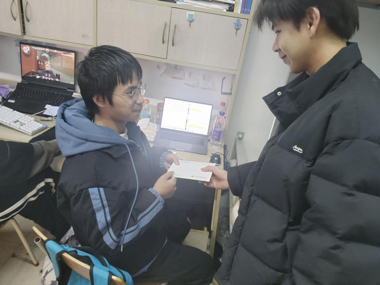 活动前期,同学们踊跃参与,用温暖的笔触写下对不懈努力的考研学子的鼓励与支持,不仅让同学们感受到文学的力量,也给考研学子送去温暖、增添动力。12月13日,一封封匿名信伴着亚洲av 领导、老师们精心准备的“考研加油礼包”发放到每一位考研学子的手中。考研学子孙楠在收到匿名信后给学生会权益邮箱留言:“最近考研的压力比较大,但读到这封信后,心里就像有一股暖流在徜徉,很温暖,感谢学弟学妹的鼓励!”
